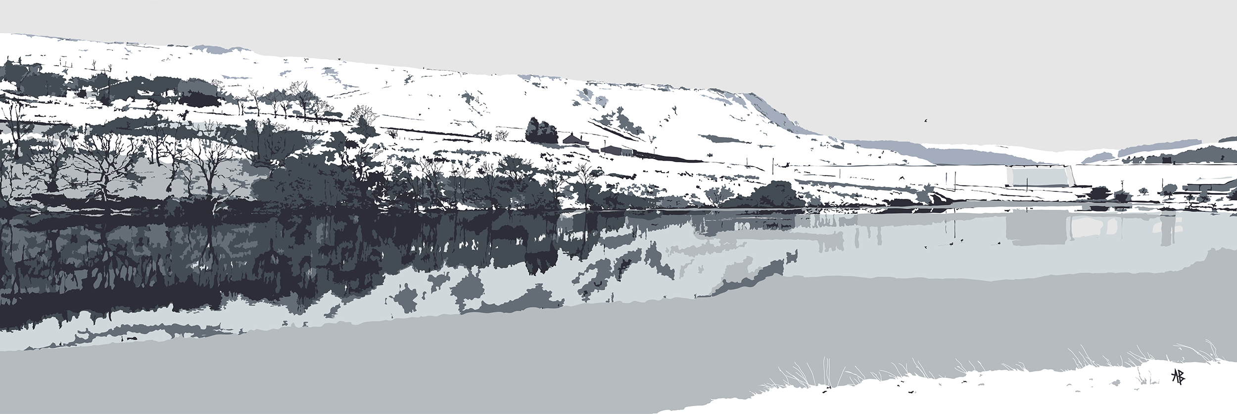 ‘Ravens, Hold Wood Reservoir’ Digitally drawn vector artwork inspired by nature in Holden Wood, near Musbury, Rossendale. Available to buy as limited edition giclee art print in various size options. 100 editions.